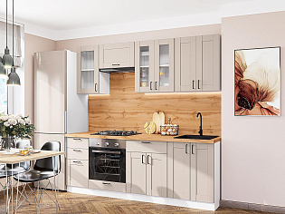 Главный плюс: много шкафчиков.  Выбрали вариант сандал белый. И не прогадали. Смотрится великолепное. Жаль, что двери идут без доводчиков.