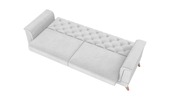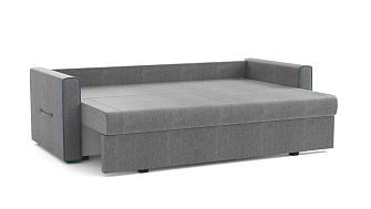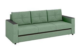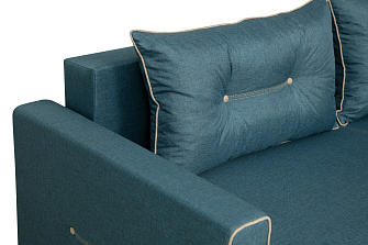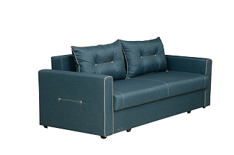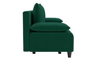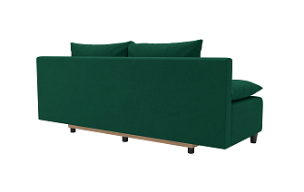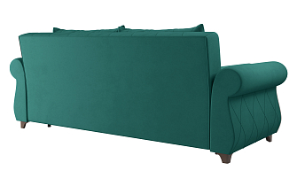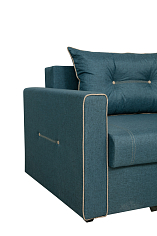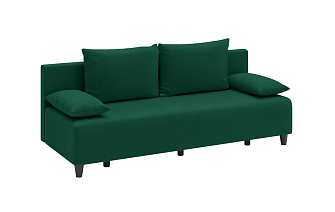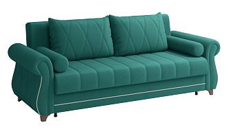 Заказала этот диван в изумрудном цвете. Понравилась его форма – строгая и в то же время необычная. Диван не громоздкий, занимает немного места как в сложенном, так и в разложенном положении. Раскладывается легко. Ткань плотная, качественная и приятная на ощупь.