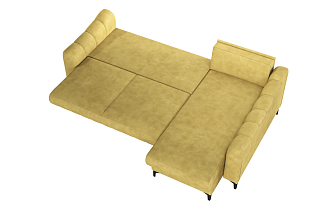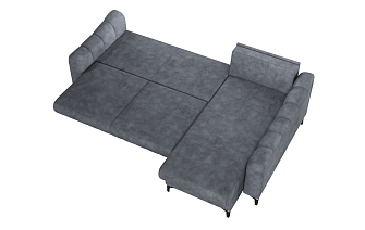 Купили диван угловой в зал, комната преобразилась сразу же, цвет очень удачный. Материал велюр, надеюсь прослужит долго. Удобные сиденья и спинка, в меру мягкий, лежать и сидеть очень комфортно. Раскладывается легко, спальное место просторное, как полноценная 2х-спальная кровать. Сбоку вместительный выдвижной ящик-поместились все игрушки ребенка. Спасибо, вся семья довольна покупкой.